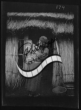 Ainu woman,villages,nitrates,doorway,hut,thatched buildings,Arnold Genthe,1908