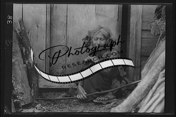 Ainu woman working outside wooden hut,villages,portraits,Arnold Genthe,1908