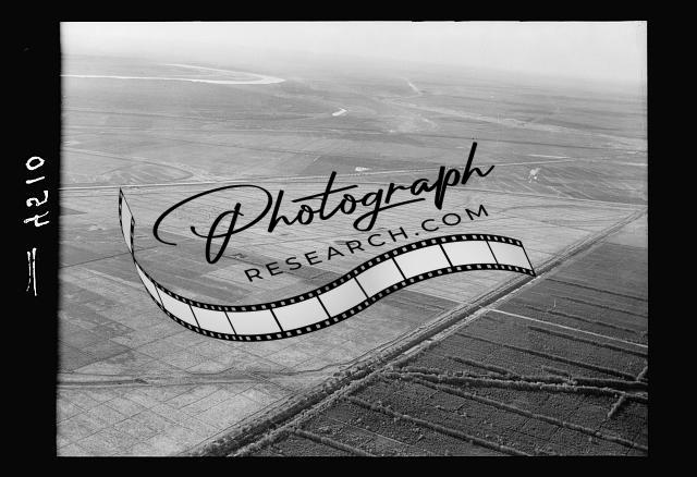 Title: Air route to Baghdad via Amman and the desert. Euphrates. A bend in the river with settlements along its banks