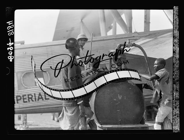 Shiluks refulling the plane,Malakal,Sudan,Malak'al,Matson Photo Service