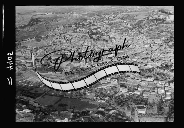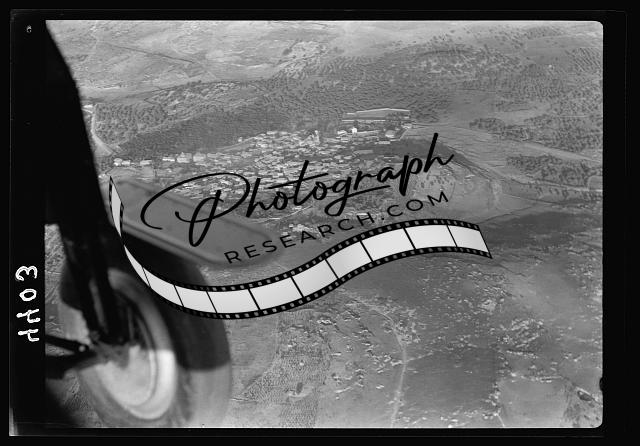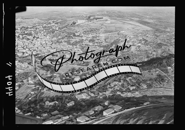 Title: Air views of Palestine. Air route over Cana of Galilee, Nazareth, Plain of Sharon, etc. Nazareth. Approaching town from S.E. showing main road into town, convents, etc.
