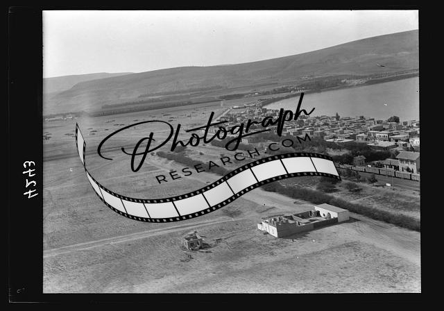 Air views of Palestine. Semakh. An Arab town on south end of the sea of Galilee