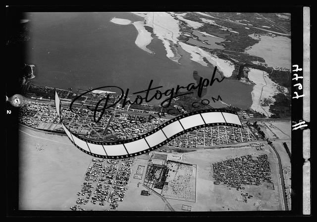 Title: Air views of Palestine. Flight from Gaza to Cairo via Ismalieh. Ismalieh. Harbour and landing docks