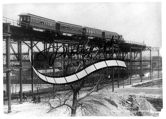 Elevated railroad,New York City,110th Street,transportation,train,track,NY,c1896