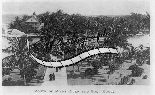 Mouth,Miami River,boat house,waterfronts,paths,buildings,trees,Florida,FL,c1904