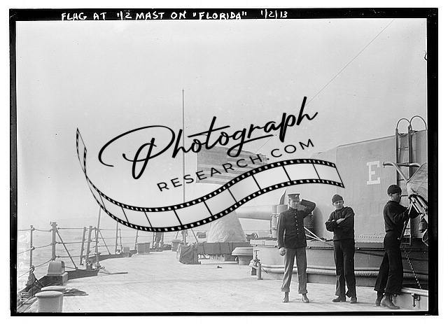 Flag at 1/2 mast on FLORIDA,January 1913,American,Men,Ship,Bain News Service