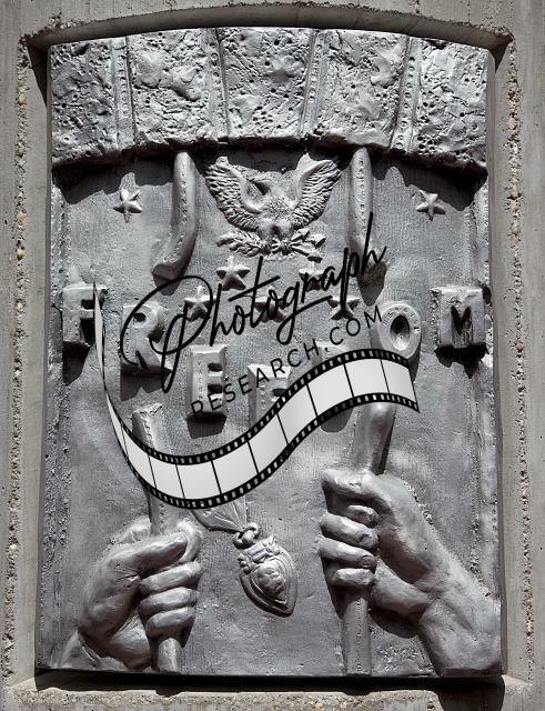 The complex includes an Education Center, a historical timeline walkway, and a temple engraved with the 11,000 names of Alabamians lost to war in the 20th Century. Each pedestal features detailed artworks.