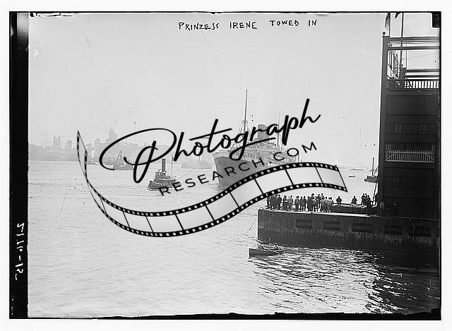 Prinzess Irene towed in,ship,boats,people on dock,Bain News Service