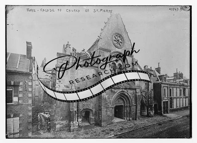 Roye,France,Façade of Church of St. Pierre,damaged buildings,rubble,Bain News
