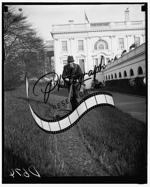 First sign,spring,White House,Sam Beggs,gardener,Executive Mansion,mowing,1937