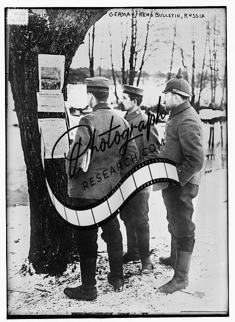 German News bulletin -- Russia,soldiers,papers tacked to tree,snow,Bain News
