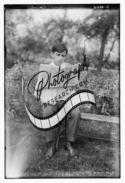 Cantor,reading newspapers,benches,seats,outdoors,plants,men,Bain News Service