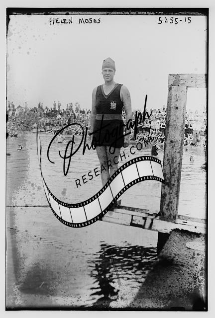 Helen Moses,competition swimmer,bathing suits,water bodies,women,crowds,jumping