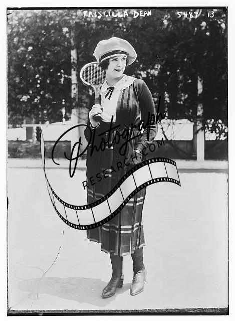 Priscilla Dean,tennis racket,hats,dresses,actress,outdoors,Bain News Service