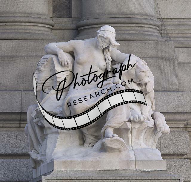 Title: Sculpture 'Seafaring Nations, Denmark' on façade, Alexander Hamilton U.S. Custom House, New York, New York