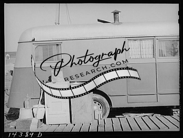 Title: Trash container and fuel oil tank supplied to each trailer in camp. Trailer camp on U.S. 1 outside Alexandria, Virginia