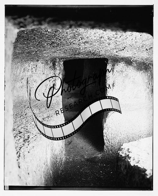 Cross carved onto door of stone passageway,Middle East,Matson Photo,1898-1946
