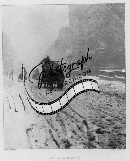 Winter,Fifth Avenue,snow covered street,1896,horses