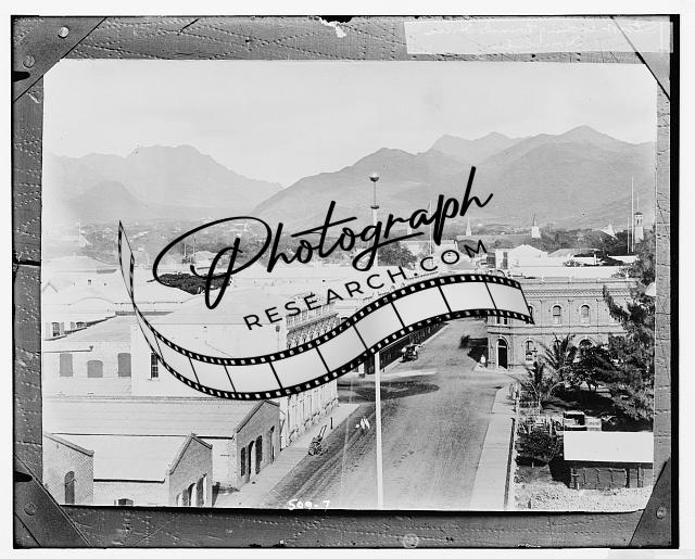 Street looking towards hills,Honolulu,Hawaii,HI,Oahu,buildings
