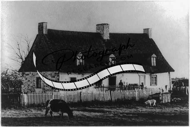 Ciel D'Automne,Ile d'Orléans,province de Québec,House,Cow,Pig,c1943,Grazing