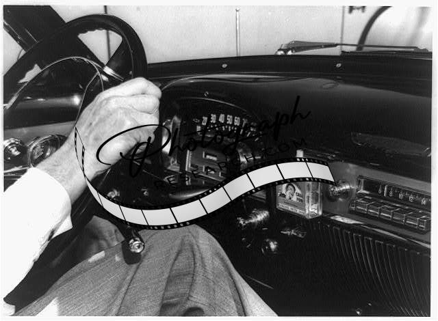 Steering wheel,dashboard,Cadillac,pack,cigarettes,parking meter change,c1953