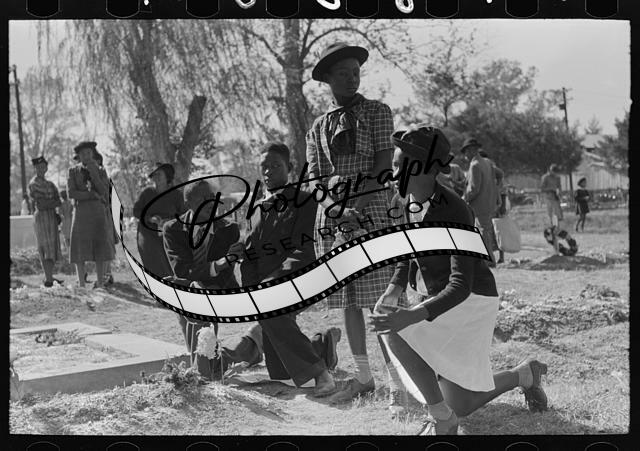 Title: On All Saints' Day at New Roads, Louisiana Negroes assembeled in the church for preliminary ceremonies and then marched en masse to the cemetery for ceremonies there. Part of the group is shown entering the cemetery