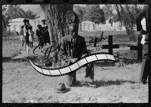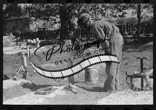 Title: Negro crossing himself and praying over grave of relative in cemetery, All Saints' Day, New Roads, Louisiana