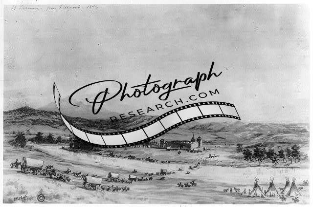 Fort Laramie,Wyoming,WY,Wagon Trains,Tepees,c1930