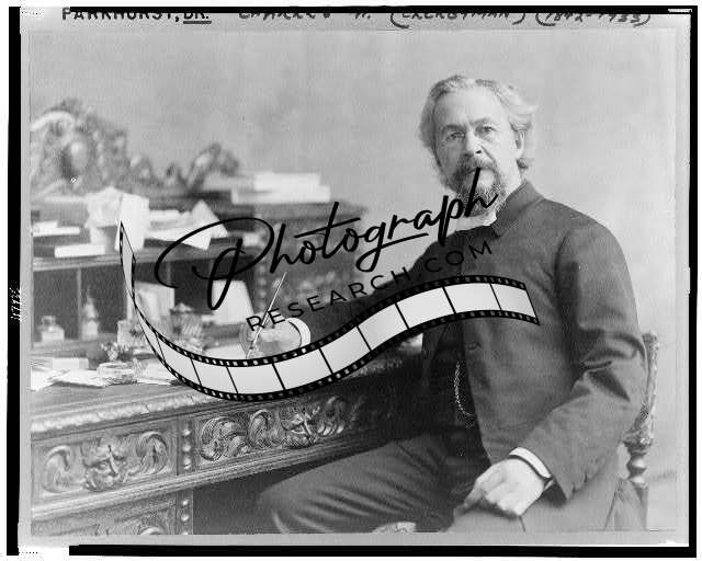 Charles Henry Parkhurst,with pen in his hand,desk,c1896,American Clergyman