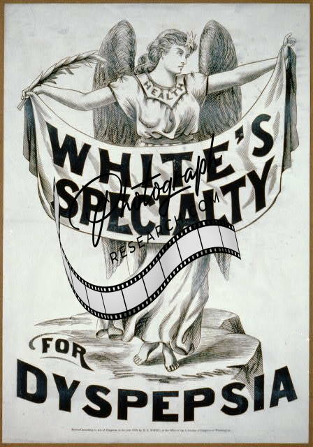 White's Specialty for Dyspepsia,1873,Angel of health,upset stomach,photograph