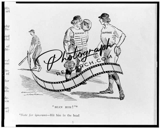 Bean him,Women's suffrage,baseball,Feminism,male batter,cartoons,D McKee,1914