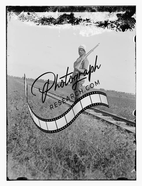 Armed guard on railroad track,June 30? 1920,RR,American Colony Photo Dept