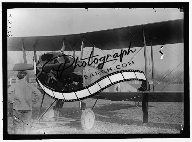 Title: ALLIED AIRCRAFT. DEMONSTRATION AT POLO GROUNDS. COL. CHARLES E. LEE, BRITISH AVIATOR, WITH AVRO TRAINING PLANE DESIGNED BY A.V. ROE OF ENGLAND