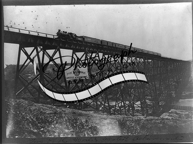 Two of the world's greatest achievements,Train,Railroad Bridge,Pabst Beer,c1901