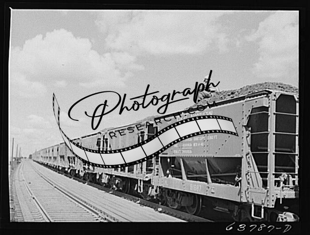 Title: Ore punchers waiting for signal to begin unloading cars of ore into bins on dock. Allouez, Wisconsin