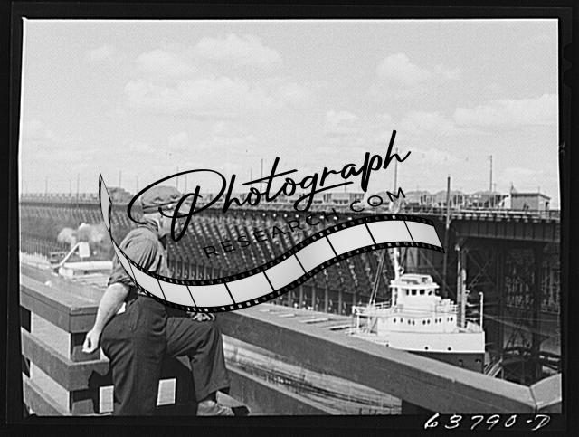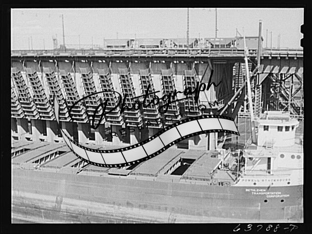 Title: Ore from the Minnesota iron range going onto docks at Allouez, Wisconsin