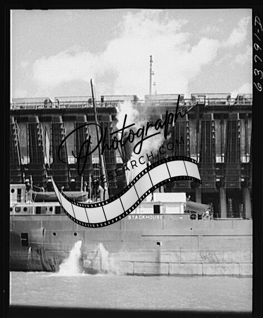 Title: Great lakes boat at ore docks. Allouez, Wisconsin