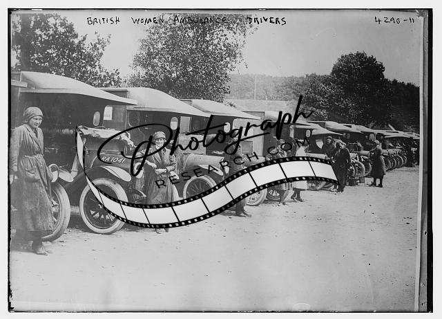 British Voluntary Aid ambulance driver at front,August 1917,women,Bain News