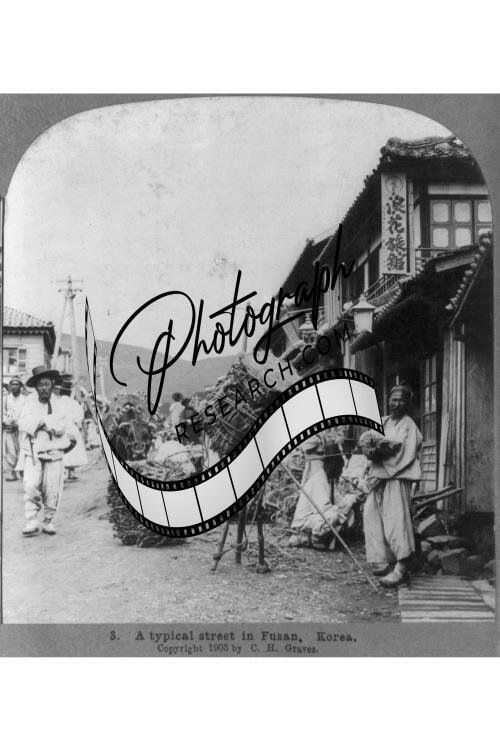 A typical street in Fusan,Korea,men and women crowding,c 1903