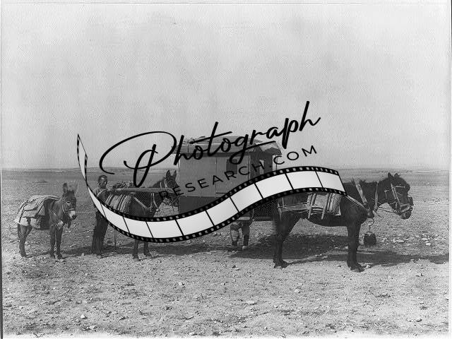 Transportation,c1910,Sedan Chair carried by 2 mules,China,man,donkey?