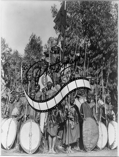 Africa,Kavirondo Natives,Standing Pyramid,Spears,Shields,c1915