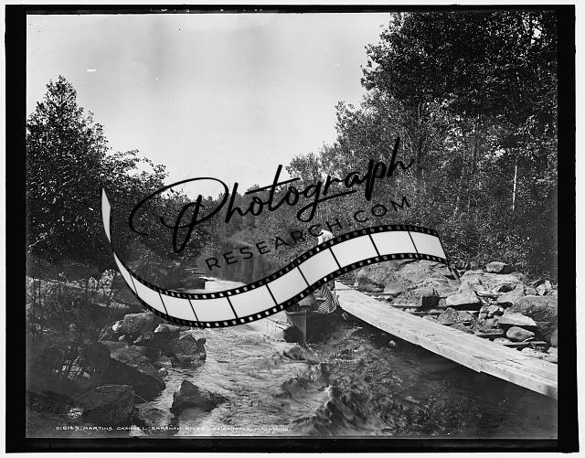 Martins Channel,Saranac River,boats,canoes,Adirondack Mountains,New York,NY,1900