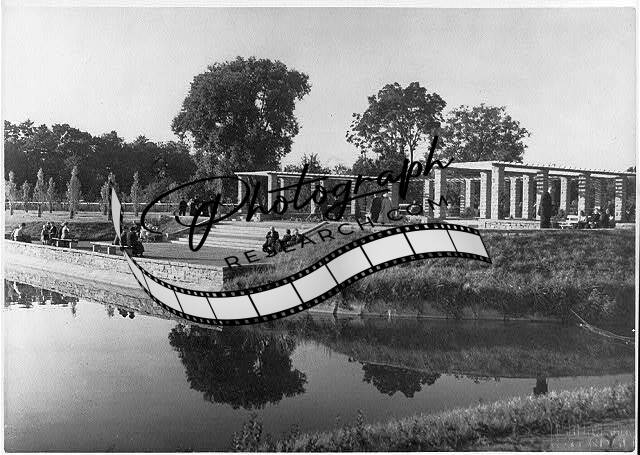 View of lake and park seating area at Adolf Hitler-Park und -See, Stendal