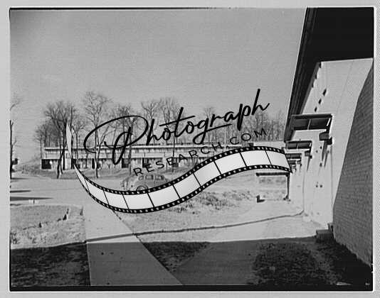 Title: Aluminum City Terrace, New Kensington, Pennsylvania. Overhanging bedrooms and door canopies, building no. 5