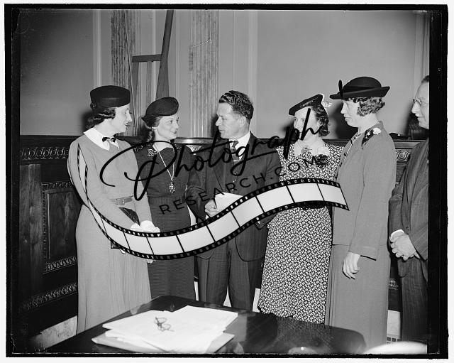 Title: View amaryllis show. Washington, D.C., March 28. Among today's visitors at the Amaryllis Show staged by the Department of Agriculture were Senora Felipe A. Espil, left, wife of the Argentine Ambassador, and Jean Wallace, daughter of the Secretary of Agriculture and Mrs. Henry A. Wallace. 3-28-39