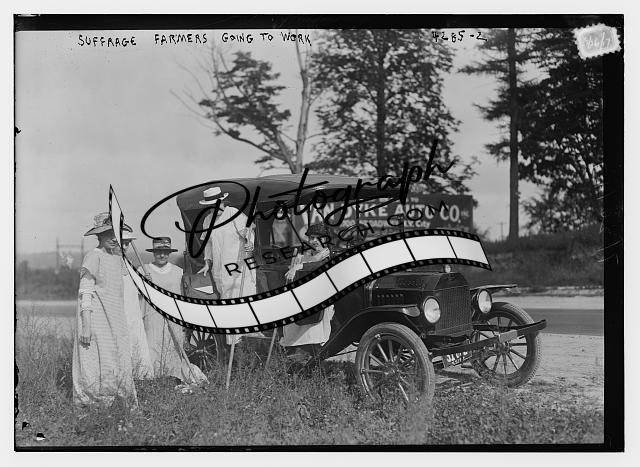 Suffrage farmers going to work,women,automobile,employment,Bain News Service