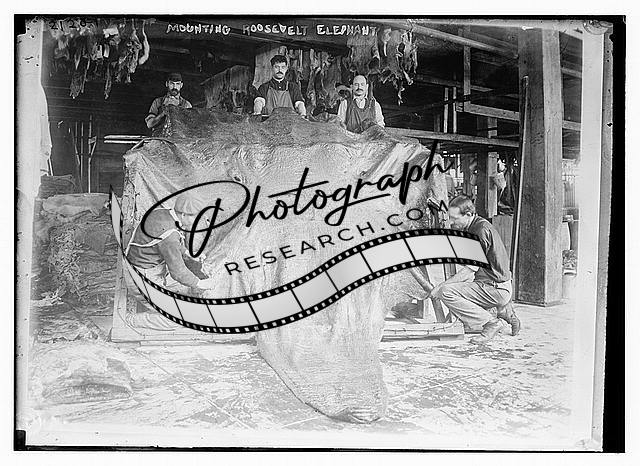Mounting Roosevelt elephant,men,Theodore Roosevelt,dead animal