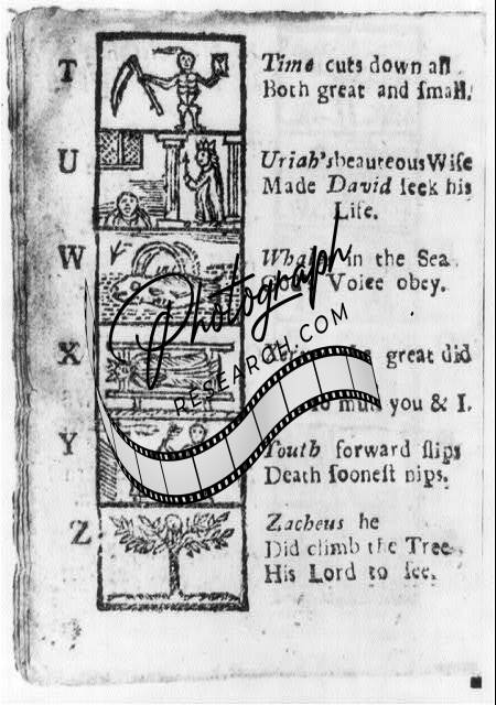 New England Primer,Alphabet,1721,Letters T through Z