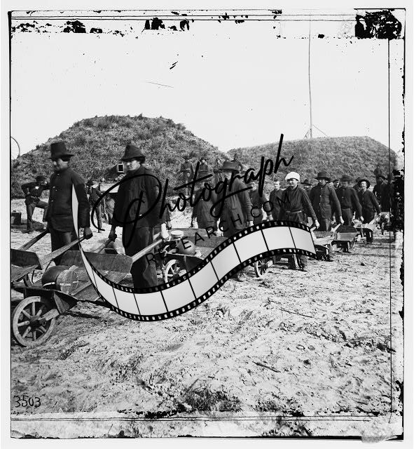 Roger Durham, Director of the US Army Heritage Museum, 2007, identified this view as Fort Putnam on Morris Island. In 2011, Andy House provided further information that places this photo of Battery Chatfield. The soldiers' clean uniforms indicate 'garrison' troops rather than soldiers in the field. Milhollen and Mugridge misidentified this photo as 'Fort McAllister, Ga.,' and it appears with this misidentification in other books and articles.