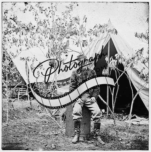 Caption from negative sleeve: Col. Geo. H. Chapman at his Hdq. Army of the Potomac, 3rd Indiana Cavalry.